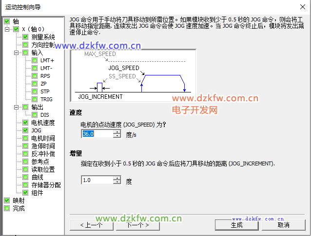 设定Jog运动步长及运动速度。设定好之后点击“生成”。