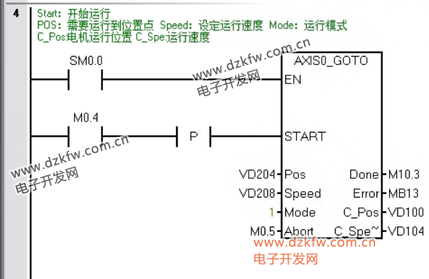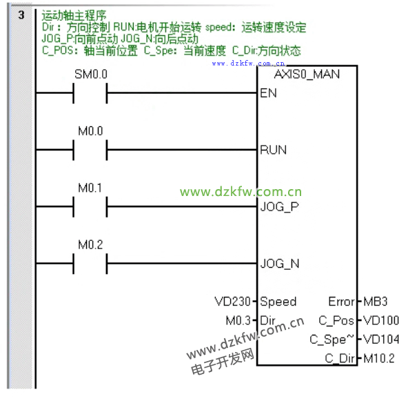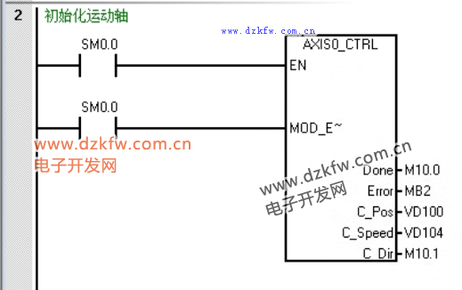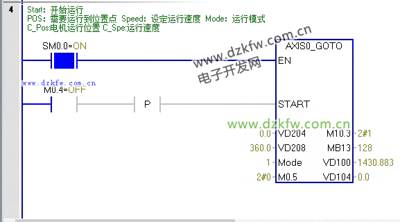 设定速度50转/s,接通M0.3后接通M0.0,电机开始反向运行