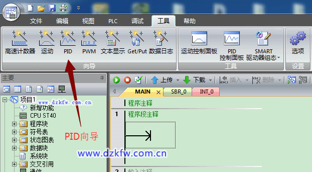 PID向导编程组态步骤:1.在Micro/WIN SMART中的工具菜单中选择PID向导: