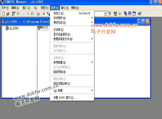 2.2 使用PC Adapter USB A2数据线将笔记本与PLC连接,在STEP7的选项菜单下点击“设PG/PC接口”,进入PG/PC的接口设置界面。