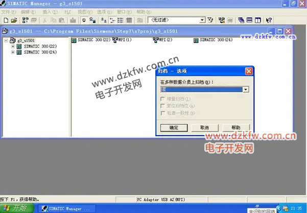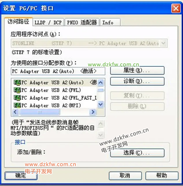 2.3 选择PC Adapter USB A2数据线对应的接口,可以选择“PC Adapter USB A2(AUTO)”或者”PC Adapter USB A2(MPI)”。接口的属性无需更改。选择完成以后点击确认即可。