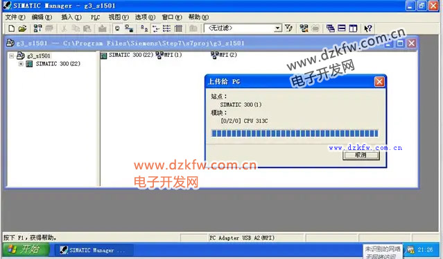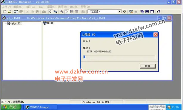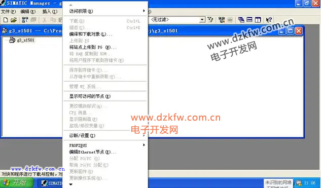2.5 通讯成功以后,便可以上传下载了。选择“PLC”菜单下的“将站点上传到PG”,进行PLC程序上载的操作。