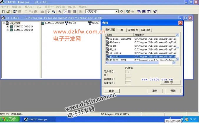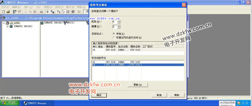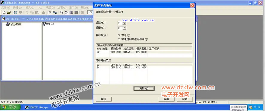 2.10 重复2.5到2.7的过程,将多个PLC的程序上载到项目中。下图选择的是G3-S1501柜内处于下方的PLC,MPI地址为24。