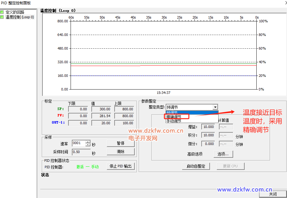 6.达到目标温度附近,切换自动模式