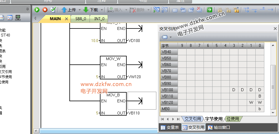 B 表示已分配存储器的一个字节,一个字节8位,例如上图中使用了VB110,用B表示,并且V110.0到V110.7都不能使用了;