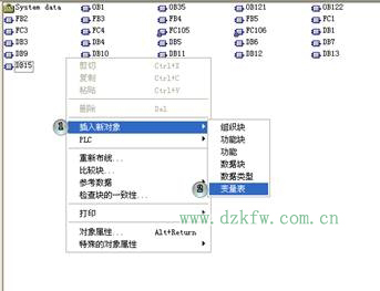 1) 在程序界面右键选择插入新对象继续选择变量表即可建立变量表