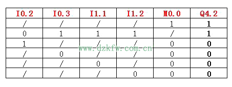 上图中,“常开点”I0.3、I1.2、I1.1及“常闭点”I0.2串联后,与“常开点”M0.0并联,然后为“线圈”Q4.2供电。在“继电器与接触器“型电路中,用梯形图编程会显得一目了然,犹如看电气连接图一般。