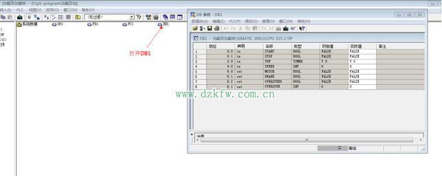 背景数据块中的变量就是其功能块中的局部变量,功能块的数据永久性的保存在它的背景数据块中如下。