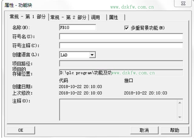 在SIMATIC管理器中执行【插入】-【S7块】-【功能块】,功能块名称为FB10,在多重背景功能打勾。如下图: