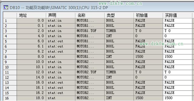控制两台电机的局部变量均存在多重背景数据块DB10中了,如下图所示: