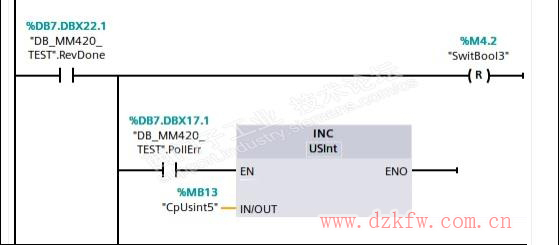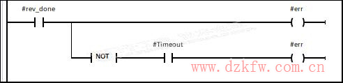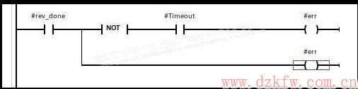 程序初衷为当接受响应完成时ERR置位,或响应超时ERR置位。上述程序是可以完成正常功能的;但若二者互换,如下图