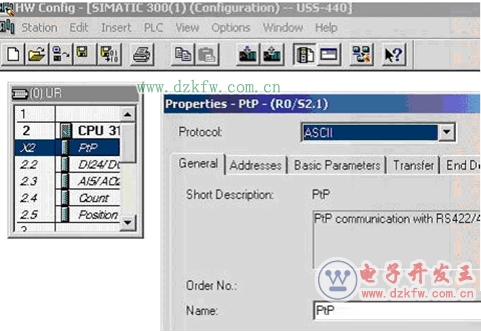 本例中选用 S7-300 CPU 314C-PtP 作为 RS485 USS 串行通讯主站,连接一个 MM440 变频器。连接多个 MM440 时与之相同。