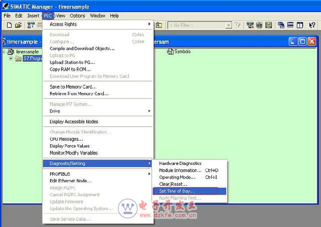 1)直接使用STEP7软件中的相关指令在联机的情况下直接设定系统时钟,如下图所示,选中项目中的站,使用SIMATIC Manager ->Diagnostic/Setting ->Set Time of Day指令设置系统时钟: