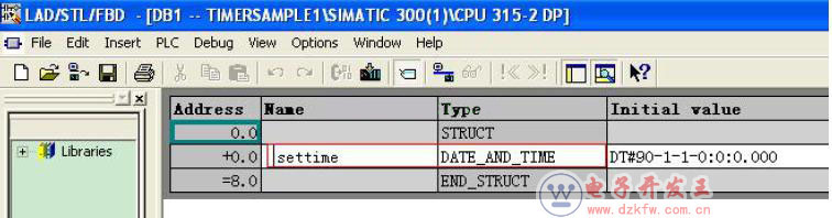 为了观察系统时间是否被正确设定,我们在DB1中再定义一个DATA_AND_TIME的变量如图所示: