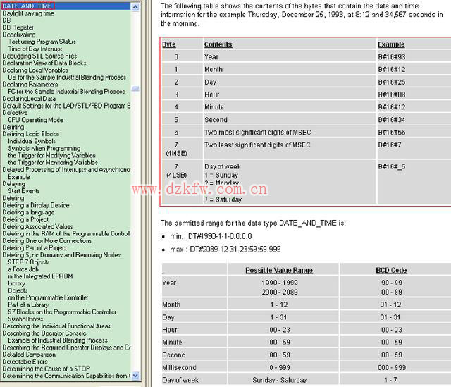 这里先介绍一下DATE_AND_TIME变量的格式,其由八个字节组成分别代表年、月、日、时、分、秒、毫秒,最后一个字节0-3位代表星期,4-7为表示毫秒,是以BCD码表示的。