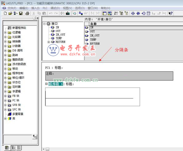 1)FC的返回值RET_VAL实际上输出参数,因此有无动态变量(STAT)是二者的局部变量的本质区别,功能块的静态变量用北京数据块来保存,如果功能有执行完后需要保存的数据,只能存放在全局变量(I/O、PI/PO、M、T、共享数据块DB中),但是这样会影响功能的可移植性,如果功能或功能块的内部不使用全局变量,只使用局部变量,不需要做任何修改,就可以将块移植到其他项目,如果块使用了全局变量,在移植时需要重新统一分配它们的内部使用的全局变量地址,以保证不会出现地址冲突,当程序复杂,子程序和中断程序很多时,这种重新分配全局变量地址的工作量非常大,也容易出错。如果逻辑块有执行完成需要保存的数据,显然应使用功能块,而不是功能。