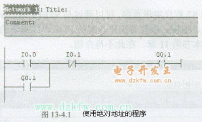 一般而言,在plc程序中的所有信号都是借助于“地址(Address)”进行识别与区分的,例如,当输入点IO.O连接了外部的“电机启动”按钮时,程序中的全部IO.O信号触点便代表了“电机启动”按钮的状态,这样的地址称为“绝对地址”(见图13-4.1)。
