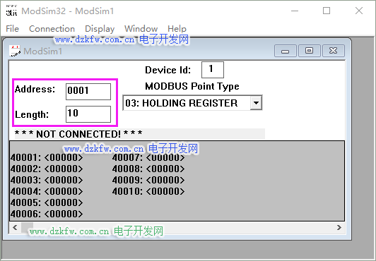 ②修改Address和Length,MODBUS Point Type使用默认类型,Devide Id使用默认值,
