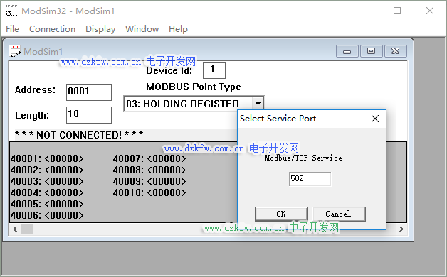 口,点击【OK】按钮。成功启动后不再有 ***NOT CONNECTED!***显示