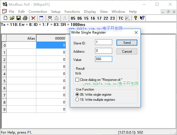至此,两边的配置完成,通信成功,更多的使用方法可以自己随便点一点其他按钮。Modbus协议属于工业范畴,一般在工业行业使用较多。