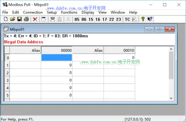 Modbus客户端这边设置相对多一些,主要是初学者刚接触时入门有些难度,之后熟悉后就像使用网络调试助手一样。从设置上来看,Client与Server双方在访问的地址上必须一致,否则Client连接时会报出【无效地址】的错误。如下: