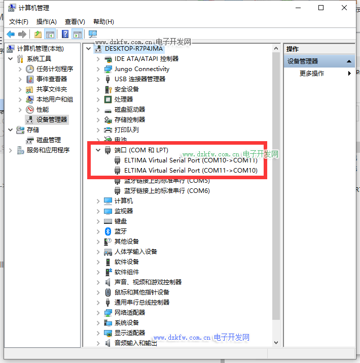 在此电脑----右键----管理----设备管理器->端口中查看是否新加了两个端口: