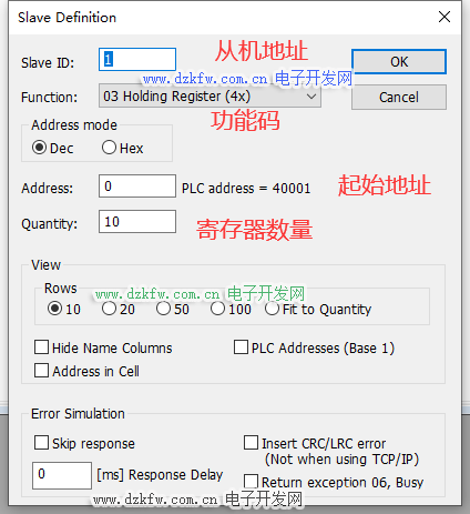 点击Setup----slave definition 设置从机数据