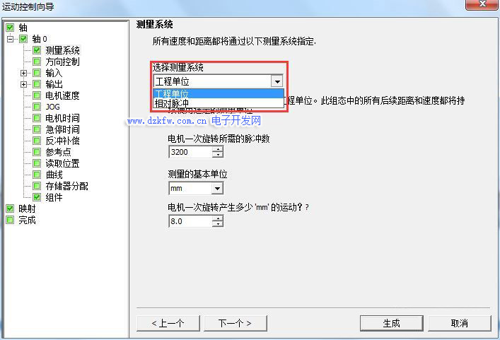 选择工程单位则需要设置正确的运动参数,系统会根据设定的参数自动将距离和速度换算成脉冲数和脉冲频率,所以设定的距离和速度都是浮点数。这种模式编程简单,但是余数处理不够灵活。