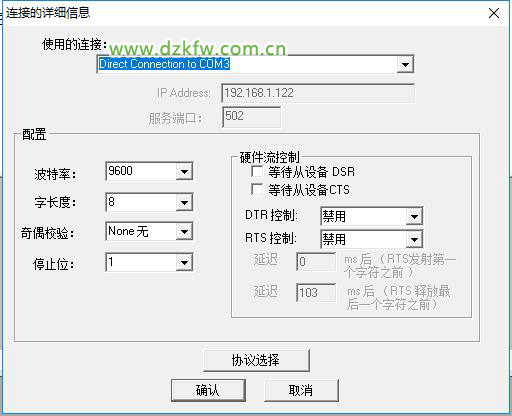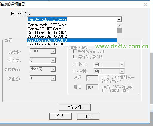 选择相应的串口;然后根据仪表端或者是别的端,总之就是你要连接的设备,通讯参数,设置上: