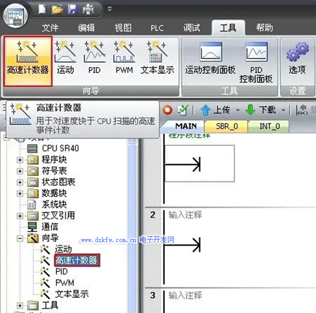 HSC_INIT 为初始化子程序,请在主程序块中使用 SM0.1 或一条边沿触发指令调用一次此子程序。