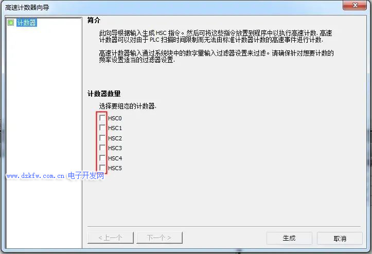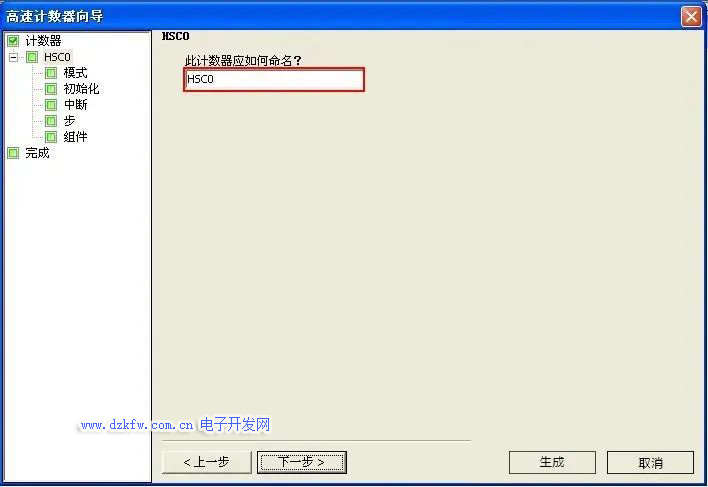 注意:Micro/WIN SMART 高速计数器指令向导采用树形目录的形式,用户可以直接在目录树中选择相应选项进行设置,这种方式便于用户在完成指令向导后根据实际需求进行快速修改。
