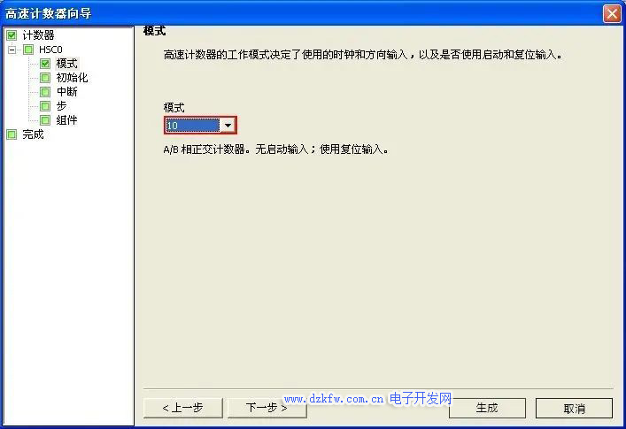 步骤三:选择计数器模式,详细信息请见“表1.高速计数器的模式及输入点”。