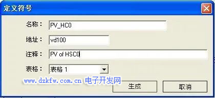 设置计数器预置值:可以为整数、双字地址或符号名:如 5000、VD100、PV_HC0。用户可使用全局符号表中双字整数对应的符号名。如果用户输入的符号名尚未定义,点击' Generate (生成)’后会看到: