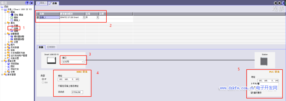 (4)设置HMI的IP地址为:192.168.0.105(HMI的IP地址根据你的电脑的IP地址设);