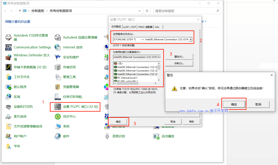 3.在控制面板中设置PG/PC接口的应用程序访问点