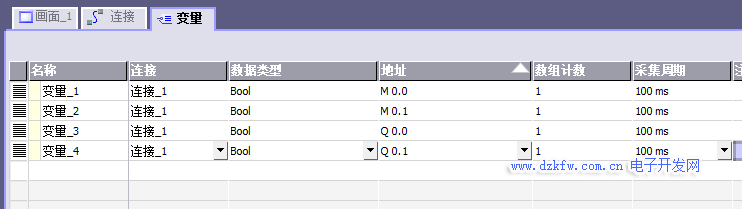 4.在项目下打开变量,建立M0.0和Q0.0的变量。