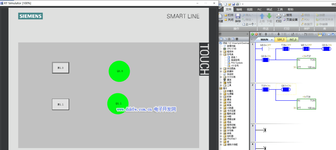 1.打开STEP 7-MicroWIN SMART编程软件,在MAIN程序中编写一段简单的程序,然后下载到PLC中。