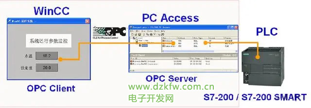 PC Access SMART是上位机与PLC的一个中间软件,组态王和WINCC都可以读取OPC中的数据。