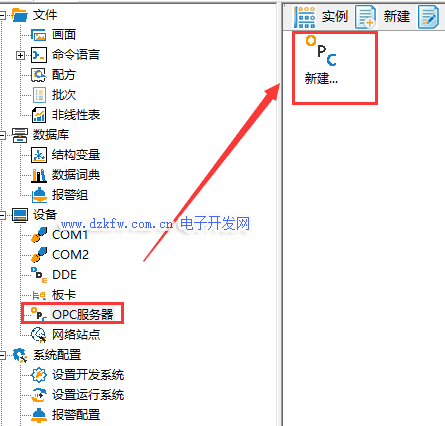 先创建或打开一个组态王项目,然后选则OPC服务器如下图所示: