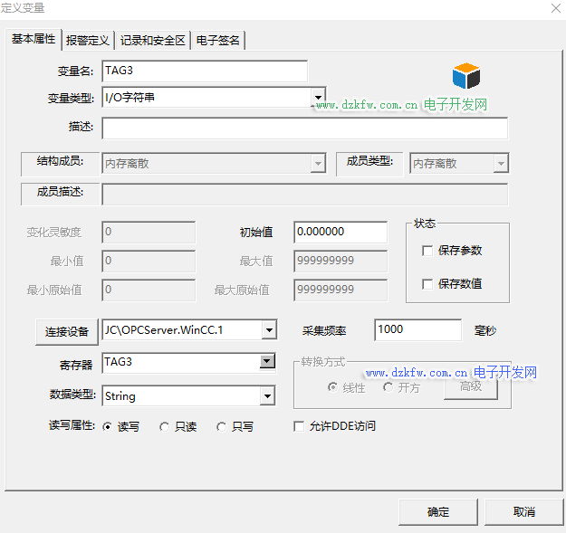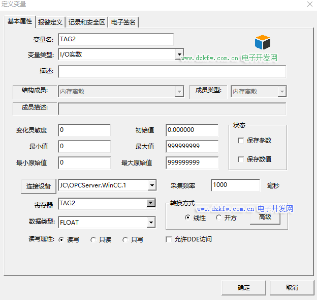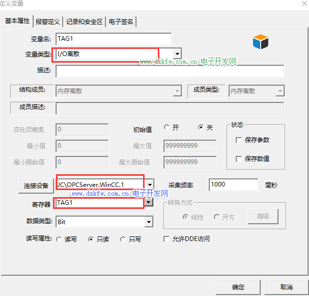 至此我们的WinCC中的工作便完成了,下面进入组态王中的设置。