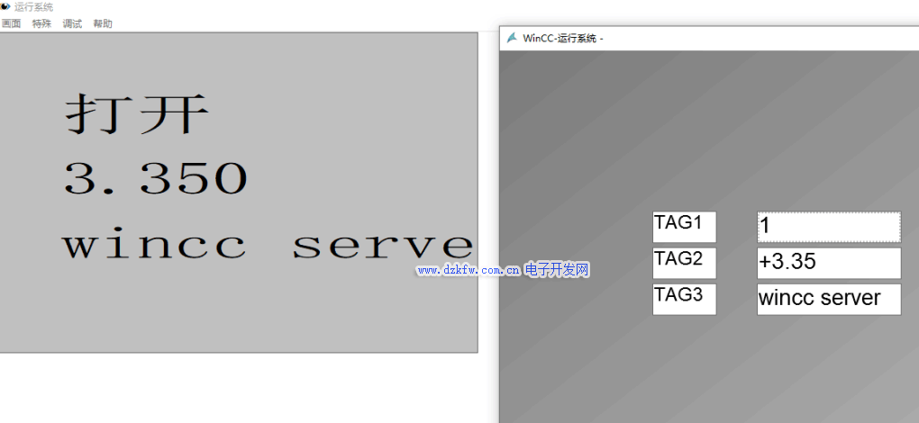 然后在画面中,创建三个文本,分别组态值输出,然后运行组态王,那么组态王就可以读取到WinCC的数据了。