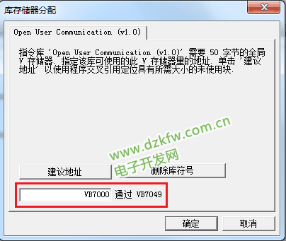 开放式用户通信库需要使用 50 个字节的 V 存储器。