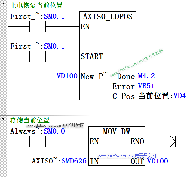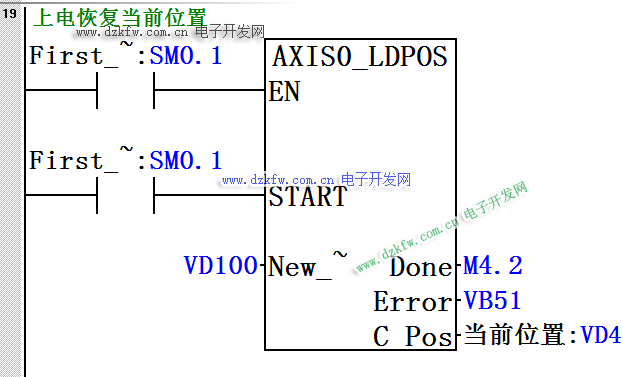 3)上电后将VD100中存储的数值恢复成当前位置。