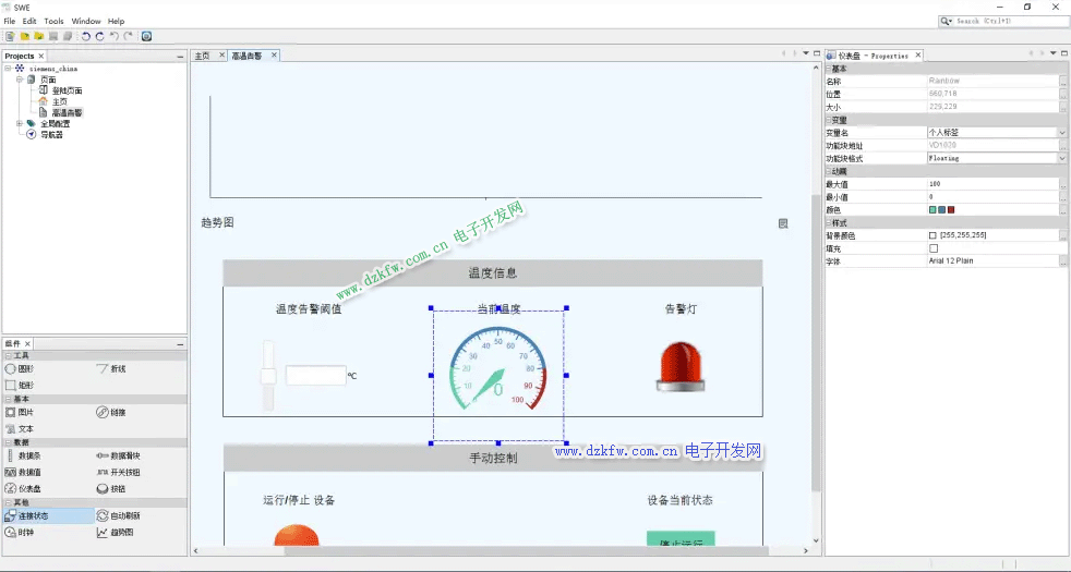 优点:通过SMART Web Editor 组态工具,可以快速的开发基于Web的人机界面,按钮、仪表盘、趋势图等控件可以满足基本的使用要求,大大的缩短产品开发周期。