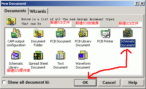 5.新建一个*.SCH文件(注意看一下那些中文的文字注释)