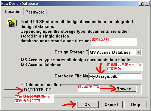 2.定义新建*.DDB的选项.