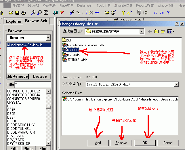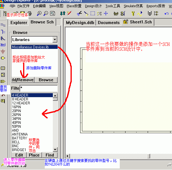 第1课:新建一个*.DDB,新建一个SCH文件,并且添加画SCH要用到的零件库