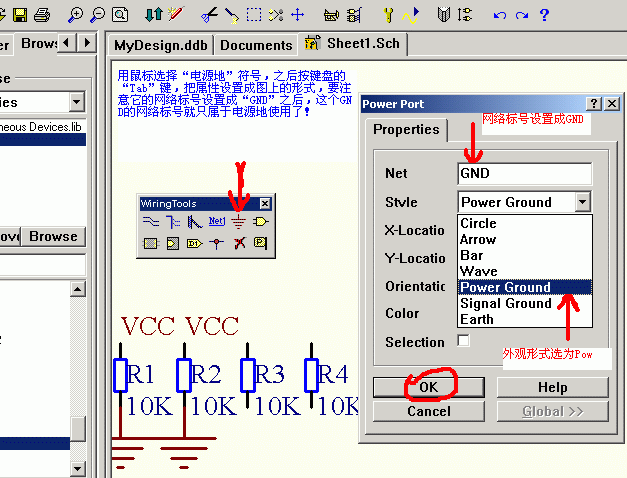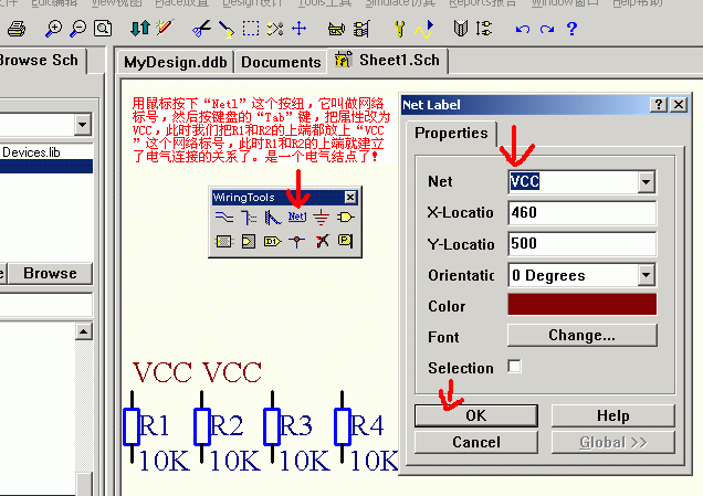 第2课:利用添加好的零件库,进行画第一个可以自动布线的原理图
