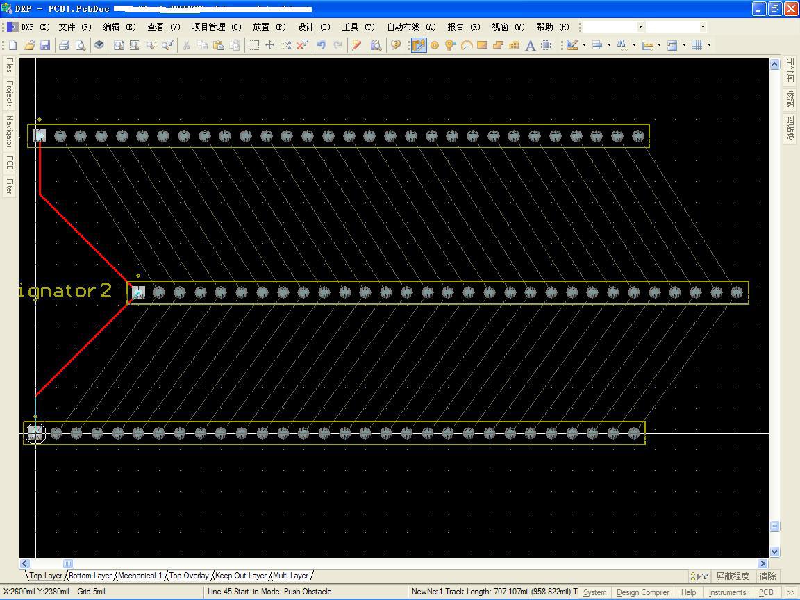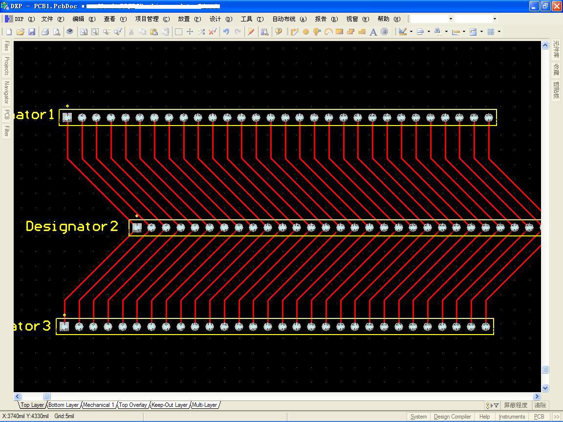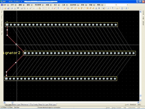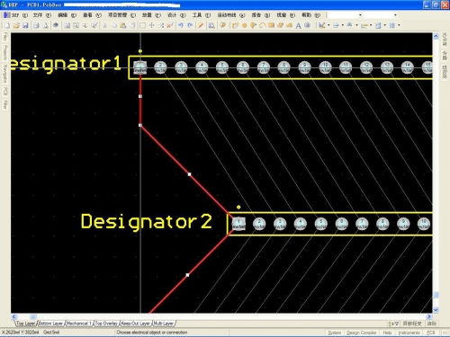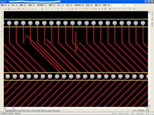 网络上经常可以见到有部分网友同时会pads (power PCB) , 以及PROTEL 。他们在使用过程中比较两个软件的使用方法。其中最集中的问题是PROTEL 中画总线的问题,只要一提到PADS 和PROTEL 两者的优缺点,大部分人都会说PROTEL 画总线不好用。其实不尽然,PROTEL 中画总线很简单,而且画完后不影响网络。画20 条以上速度要比PSDA 不相上下。如果画100 条以上的话那PADS 是无论如何都比不上的了。
