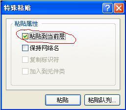 然后再“编辑”菜单里选“特殊粘贴”或者使用快捷键 “E” “A”调出特殊粘贴对话框 (不能使用工具条上的快捷图标)如图:
